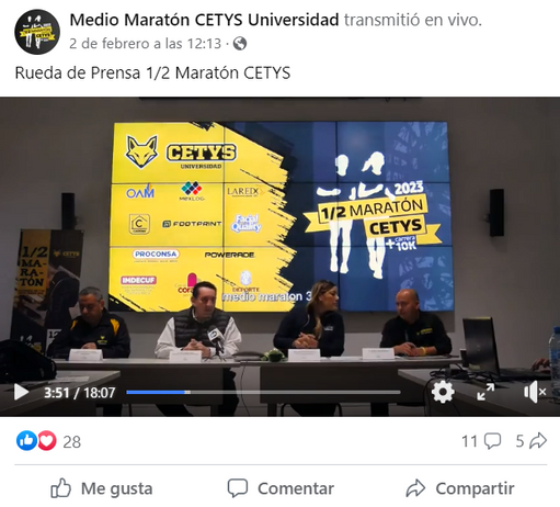 Patrocinador de la carrera de 2 k/ 10 k y medio maratón por Cetys Universidad corrida en Febrero del 2023.